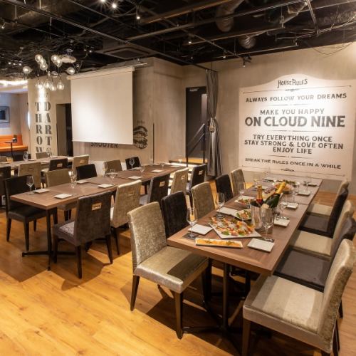 大人数でお集まり頂く、企業イベントやパーティーなど様々なシーンで欠かせない「プロジェクター」を完備しております!結婚式の二次会や同窓会では思い出の写真を投影したり、企業イベントでは資料を投影することも可能です。レイアウト自由自在の貸切は最大80名様までご利用頂けます。